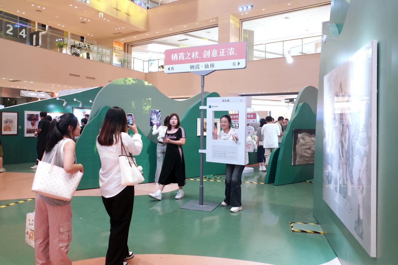 活动现场设置了雕塑绘画·文创设计大赛获奖作品展,展出绘画、雕塑和装置作品29件,文创设计作品21组,转化实物200余件,深度诠释了“创意仙林”与“艺绘仙林”两大主题。