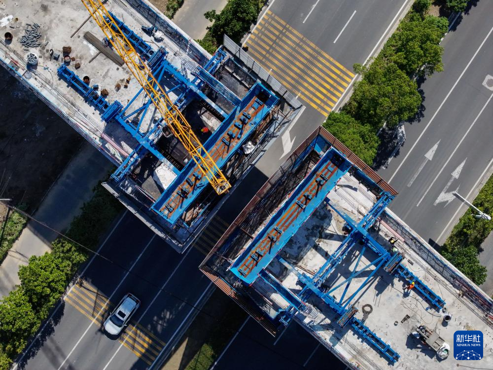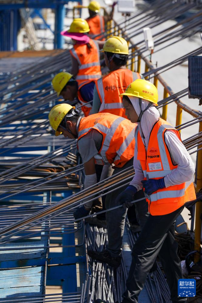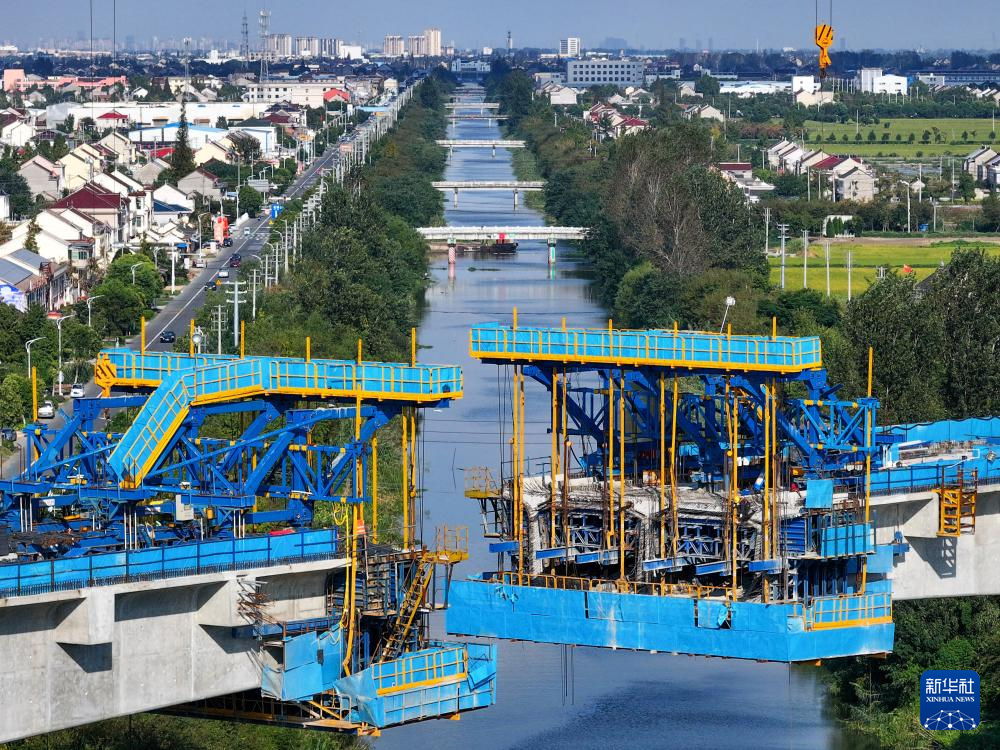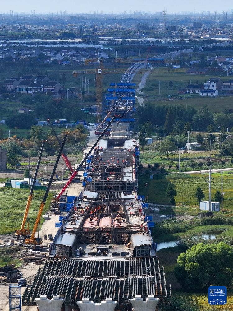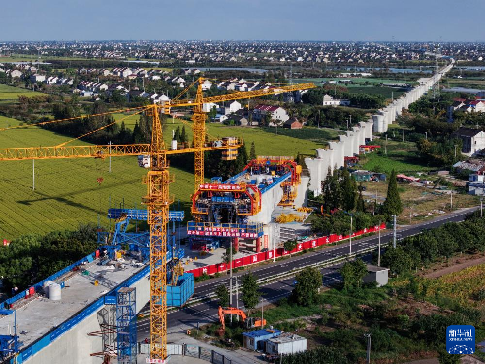 国庆期间,在沪渝蓉高铁泰州段建设施工现场,劳动者坚守岗位,确保工程建设稳步推进。