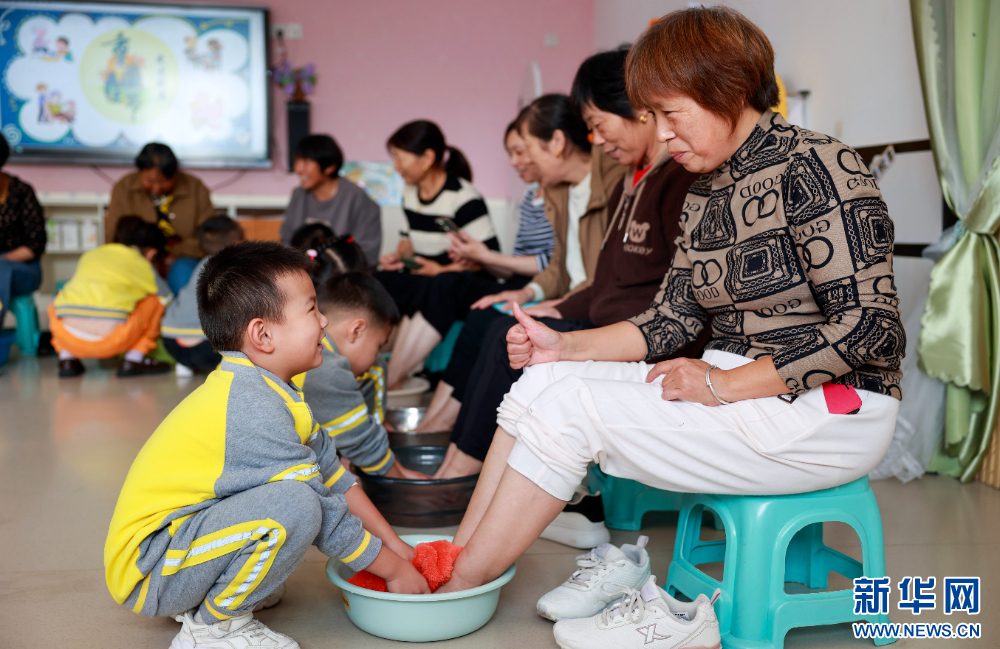 10月10日,江苏省泰兴市济川街道中心幼儿园欧景花都分园开展“童心敬老”系列主题活动,邀请老人来到幼儿园,与孩子们一起互动。孩子们表演节目、制作香囊,给老人们捶背洗脚等,现场暖意融融,孩子们心中也根植了敬老孝亲的传统美德。(崔雯雯 顾继红 朱洁)