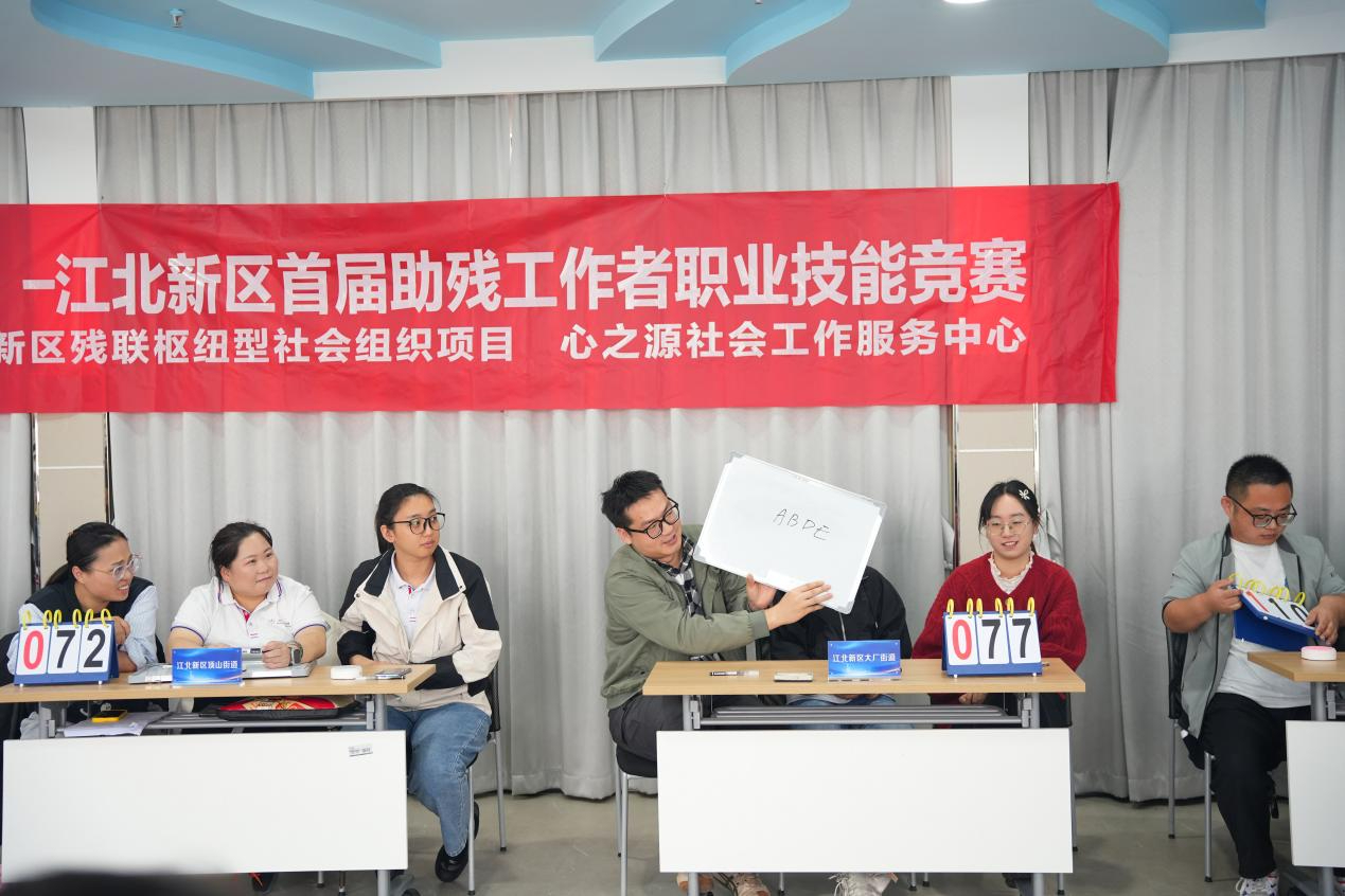 残疾预防日是哪一天?残疾人之家可以从哪些方面为残疾人提供安全保障?这些与助残工作者日常工作息息相关的知识,选手们早已成竹在胸。江北新区首届助残工作者职业技能竞赛分为业务理论考核和案例演示考核两个环节,全面检验了助残工作者的专业知识和技能水平。