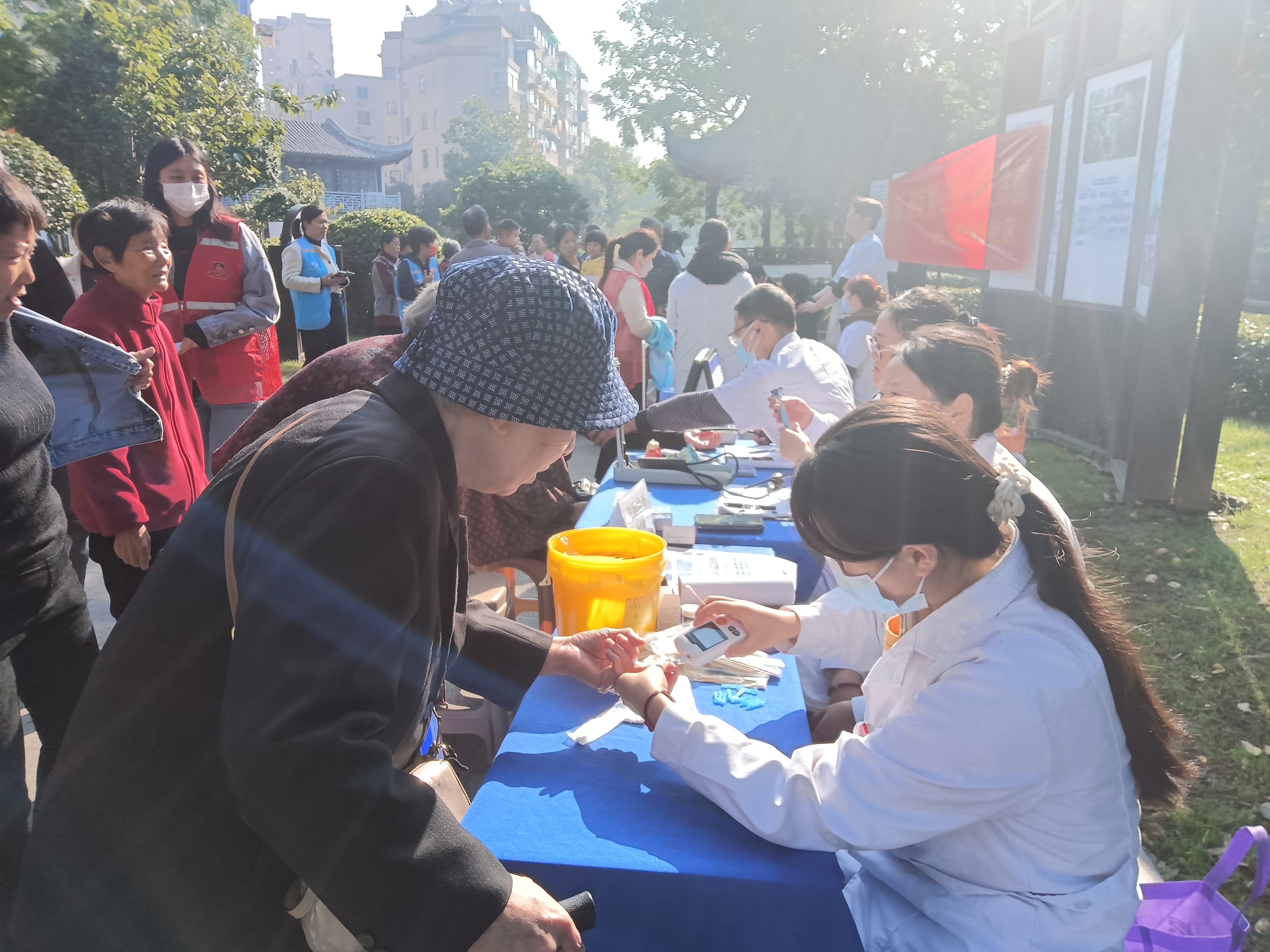 除了电、水、气、讯等“网格+公共服务”点位,社区特邀的健康服务摊位也一字排开,吸引了众多居民前来参与。南京肛泰中医医院的医护人员为居民们提供了免费的血压测量、血糖检测,耐心解答居民关于日常保健、疾病预防等方面的疑问。康贝佳口腔医院为居民提供口腔健康检查服务,并提供了口腔健康指导,向居民宣传如何更好保护牙齿健康的常识。修远堂的医师们为居民提供推拿和耳贴等中医养生服务,让居民感受中医文化的魅力。