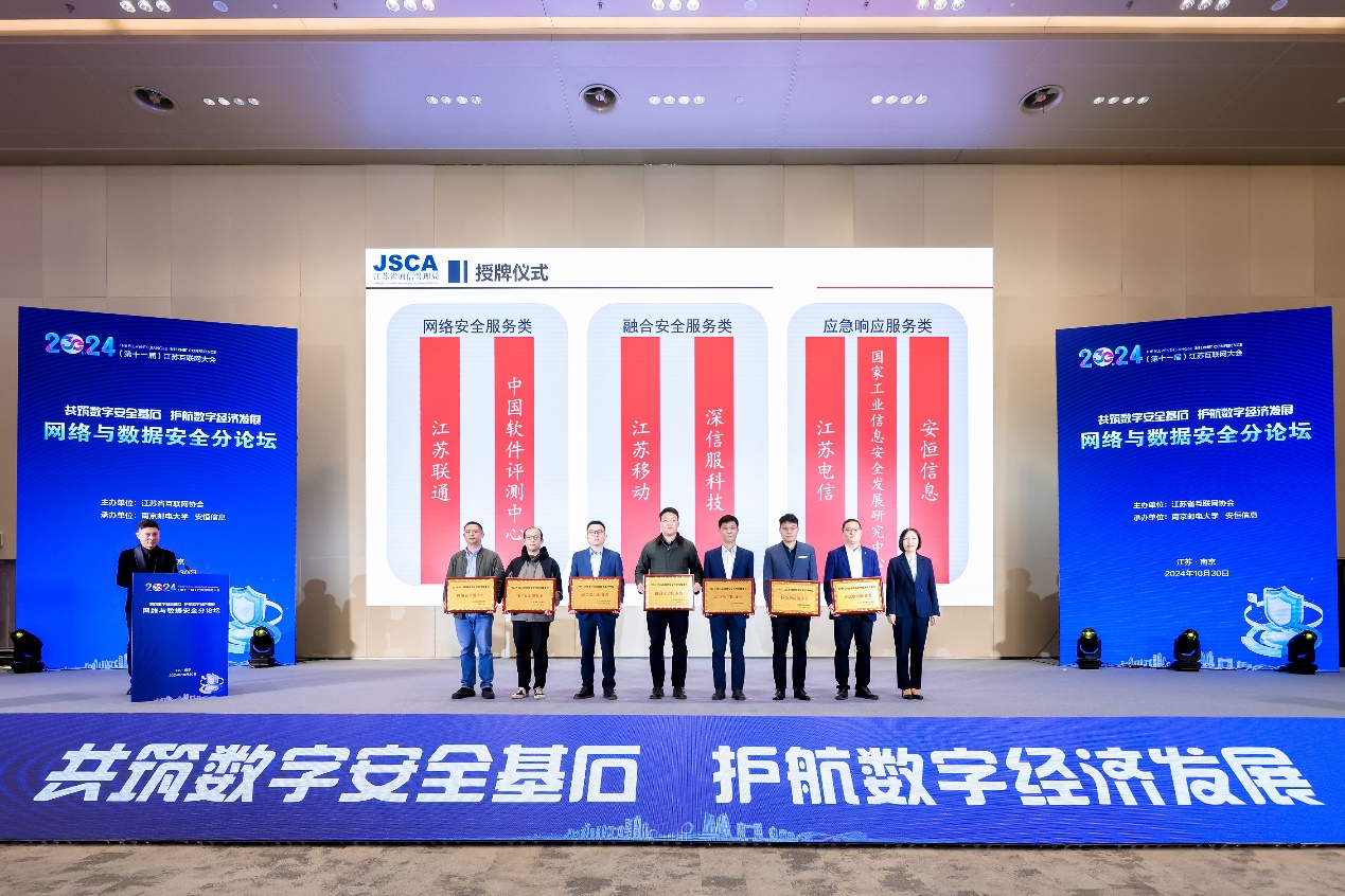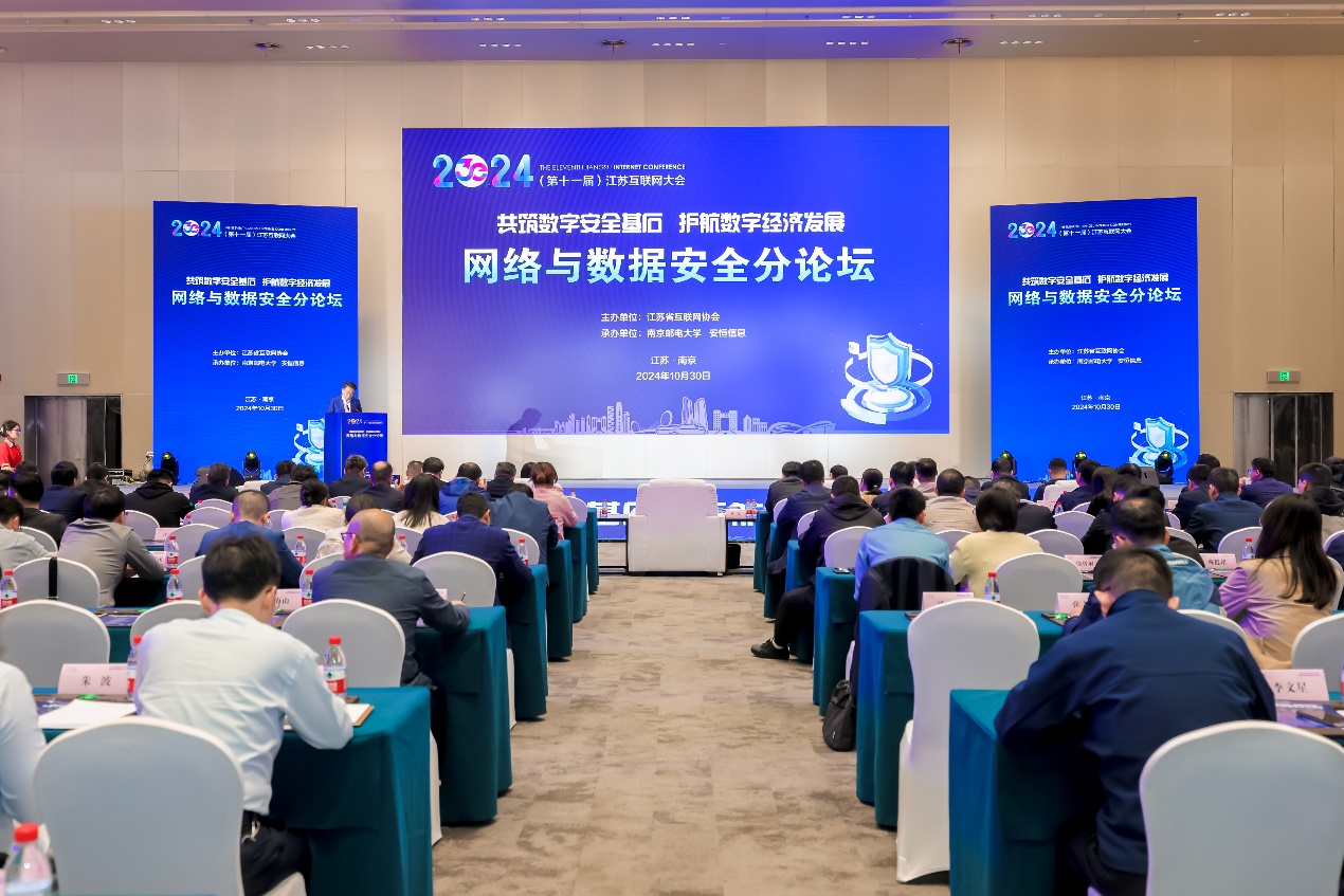 10月30日,2024(第十一届)江苏互联网大会网络与数据安全分论坛在江苏南京召开。本次会议由江苏省互联网协会主办,南京邮电大学、安恒信息共同承办。江苏省委网信办副主任陈智,江苏省通信管理局党组成员、副局长张瑞英,江苏省互联网协会理事长、南京邮电大学校长叶美兰,江苏省公安厅网安总队总队长浦天高,北京交通大学信息管理理论与技术国际研究中心(ICIR)特聘教授张向宏,中国网络空间安全协会数据安全工作部主任崔聪聪,安恒信息董事长范渊等出席会议。
