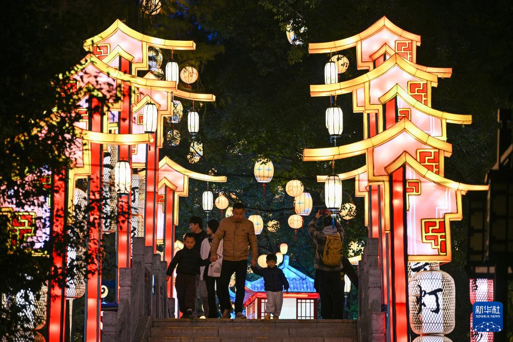 12月1日,游客在南京白鹭洲公园观赏花灯。