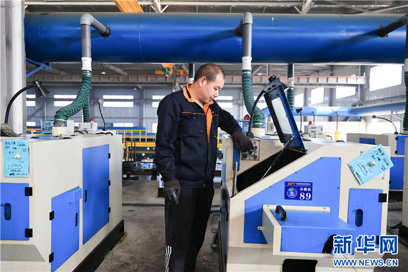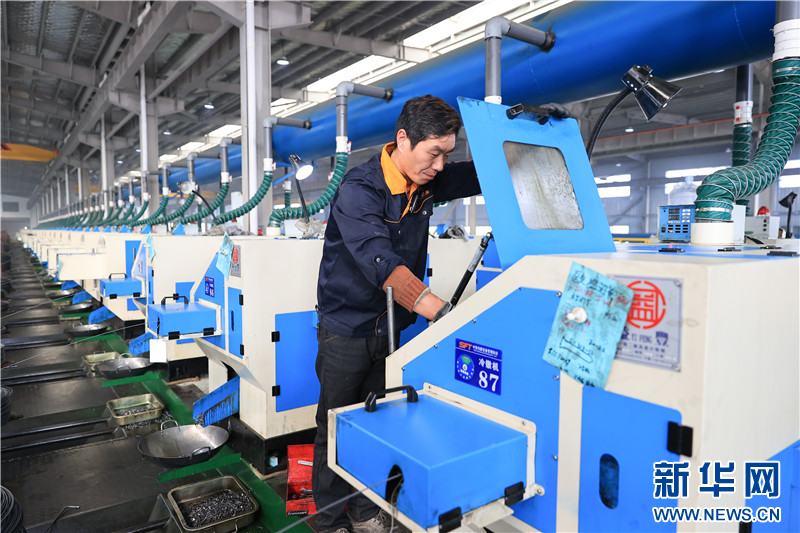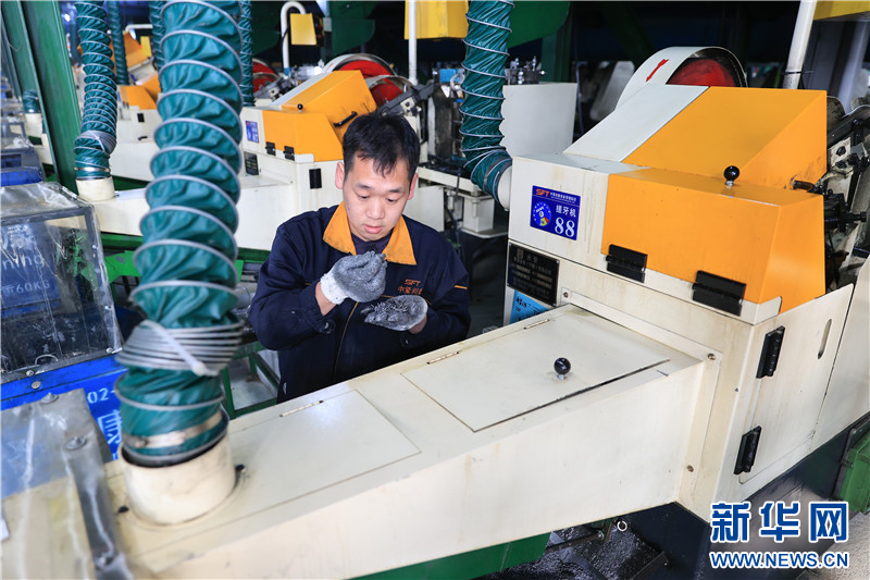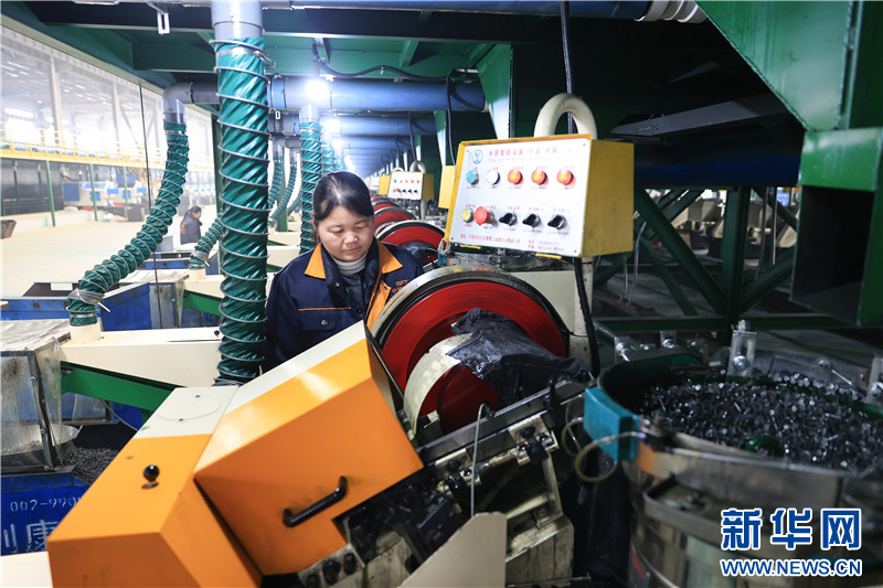 在连云港市赣榆高新区一家紧固件生产企业,工人在车间内忙碌。