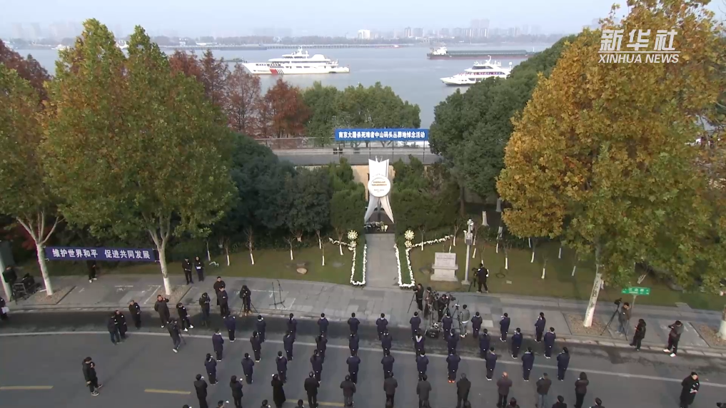 苍松翠柏无声,碑文遒劲醒目。除纪念馆外,南京市民自发前往死难同胞丛葬地悼念。在中山码头丛葬地,侵华日军南京大屠杀中山码头遇难同胞纪念碑下,市民们献上菊花,寄托哀思。