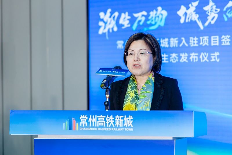 高铁新城公司和常高新集团党委书记、董事长、总经理戈亚芳致辞,她表示常州高铁新城作为常州城市发展的新引擎,自规划之初便承载着“城市新中心、中轴新支点、产业新高地、智慧生态城”的战略定位,坚持“站城湖一体化”发展理念,全力推进新城建设,力争将这里打造成为总部企业集聚、文商体旅蓬勃发展的中央活力区。经过四年的高质量建设,星耀城、领航大厦、新科创中心、创智大厦等新兴载体如雨后春笋般拔地而起,为这座活力新城增添了新的亮色。此次高铁新城城市圈盛迎“新朋友”,期待在未来,能够共同携手,建设活力更足的魅力之城。