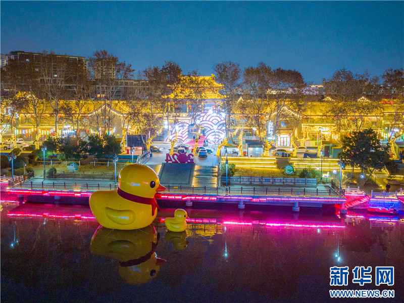 元旦临近,江苏省连云港市赣榆区二道街张灯结彩,到处洋溢着喜庆的气氛。(王玥 司伟)