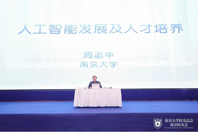 在校友们的热烈掌声中,南京大学副校长、国际人工智能联合会理事会主席周志华带来了“人工智能发展及人才培养”主题分享,他从人工智能的定义、发展阶段、技术应用、人才培养,以及面临的挑战等多个角度进行了深入探讨,强调了人工智能在不同领域的应用潜力,同时也指出了当前人工智能技术的局限性和未来发展的方向。他还提到了人工智能在社会中的应用,包括在医疗、教育、交通等领域的创新应用,并强调了人工智能技术在推动社会进步和经济发展中的重要作用。