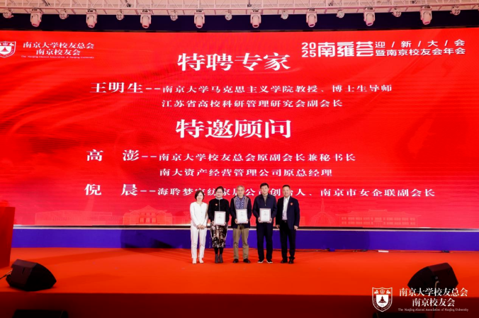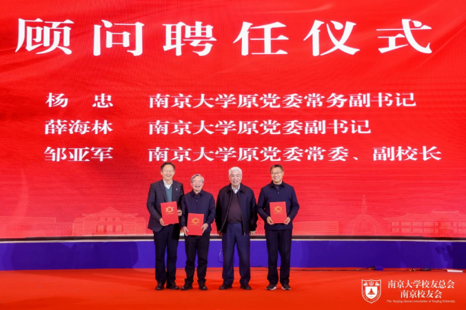 当天,还举行了南京校友会顾问、特邀顾问、特聘专家聘任仪式。南京大学原党委常务副书记杨忠,南京大学原党委副书记薛海林,南京大学原党委常委、副校长邹亚军受聘为顾问;南大原党委常委、组织部部长、党办主任王明生受聘为特聘专家;南京大学校友总会原副会长兼秘书长、南大资产经营管理公司原总经理、江苏省对外友好交流促进会会长助理高澎,海聆梦创始人、南京市女企联副会长倪晨受聘为特邀顾问。