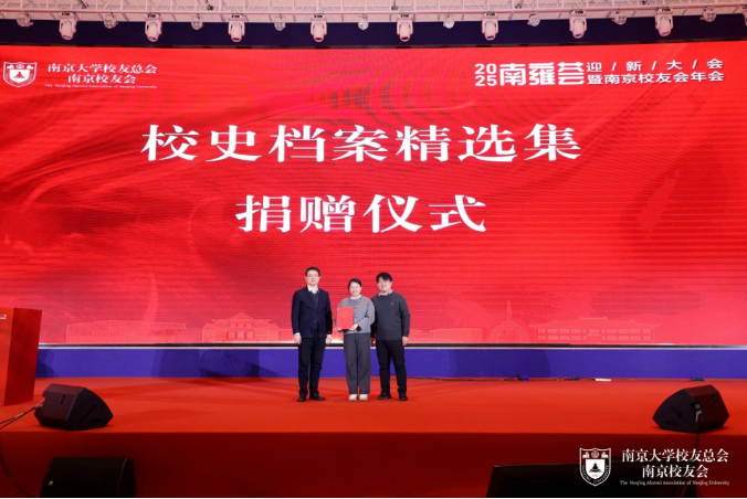 本次活动还进行了校史档案精选集捐赠仪式,该校史档案精选集由雎长城校友和邹青校友夫妇给母校捐赠的122件校史档案汇集而成。两位校友的儿子雎百宣还在现场讲述了父母收集校史档案的故事,并自豪地称自己的成长过程与父母搜集南大校史档案的过程密不可分。