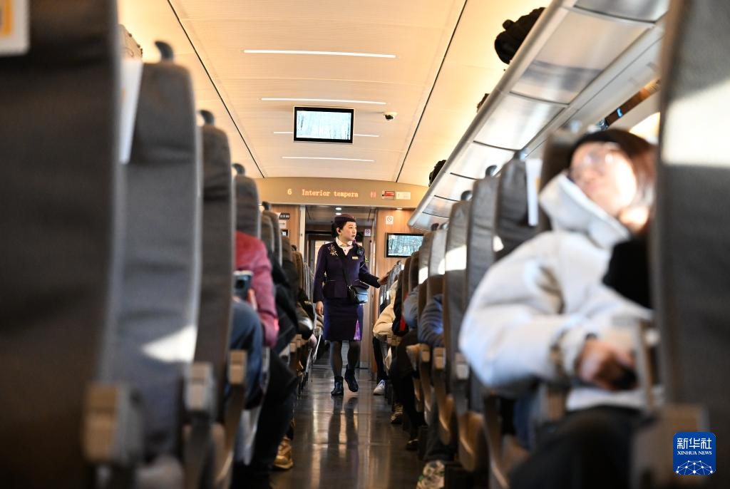 1月15日,张洁在G1605次列车上巡视。