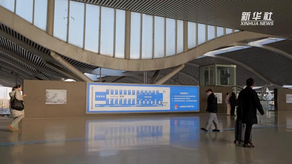 在中国铁路上海局集团有限公司徐州站徐州东站的候车大厅里,一张张指示清晰的乘车指引地图摆放在车站的醒目位置。