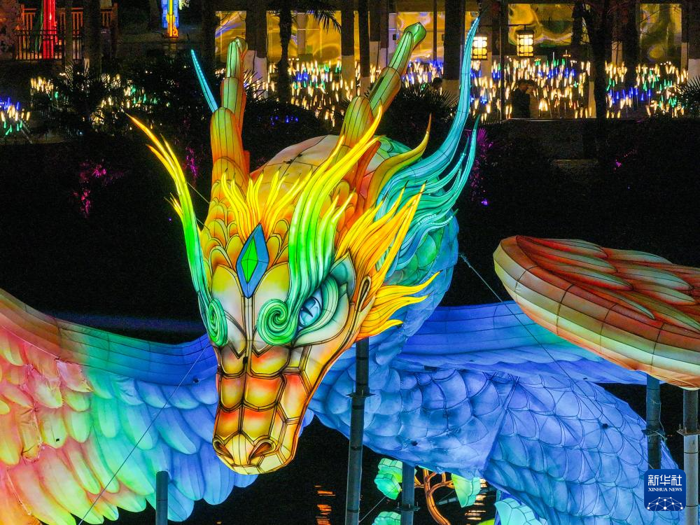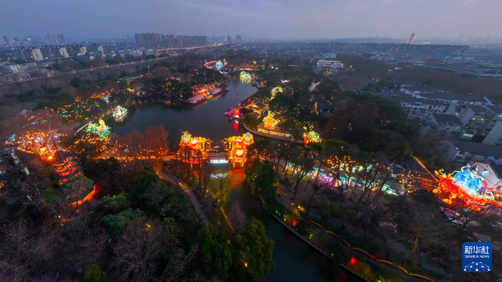 这是1月21日在江苏南京夫子庙展区拍摄的灯组(无人机照片)。