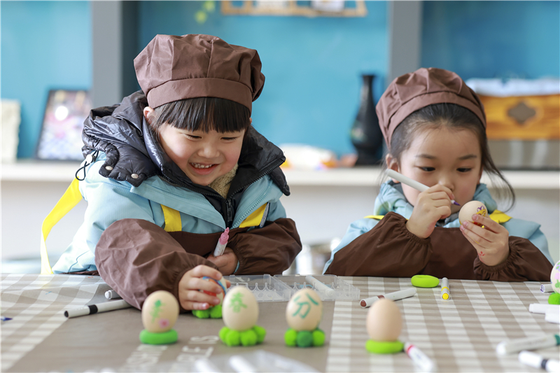3月20日,农历春分节气。江苏省泰州市幼儿园开展“二十四节气·春分”主题活动,通过舞龙、放风筝、立蛋等活动,让孩子们了解春分节气的由来和习俗,感受传统文化的魅力。(王玥 顾继红 秦丽梅)
