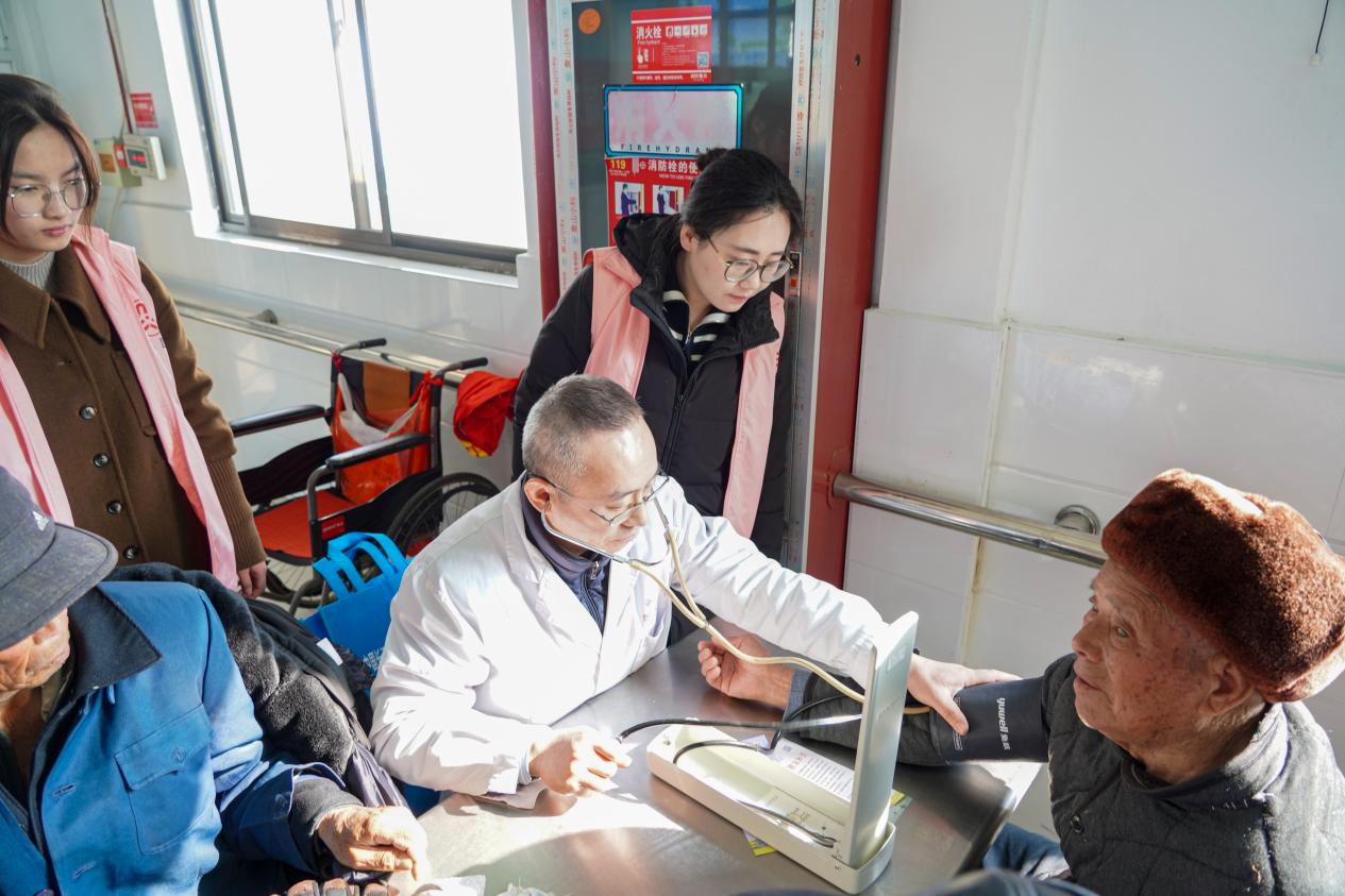 近日,兴化市周庄镇团委、妇联、慈善和社会工作站联合开展了“情暖敬老院,义诊送健康”活动,为辖区敬老院的老人们送去专业、贴心的健康服务。