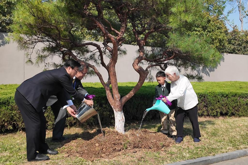 “和平的花,紫金草,和平的花,紫金草……”当日,日本“紫金草合唱团”代表与南京紫金草童声合唱团代表一起,在紫金草花园种下了一棵和平音乐树,人们齐声高唱,歌声在广场上回荡。