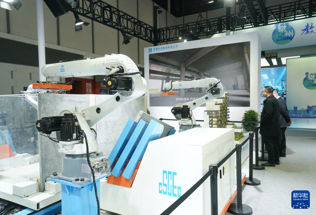 4月1日,观众在2025江苏绿色低碳建筑国际博览会的中建科技展位上参观。
