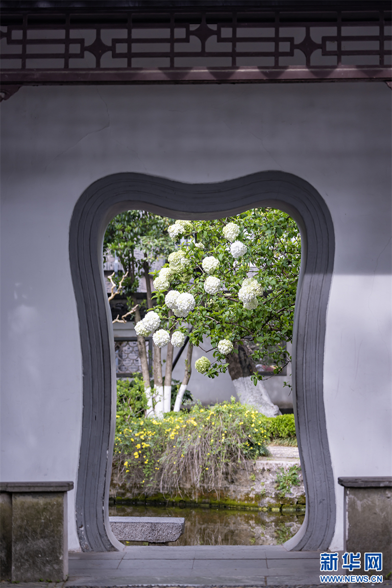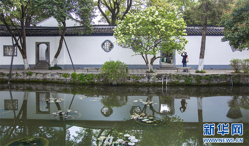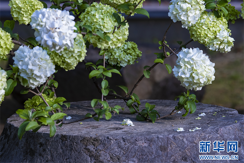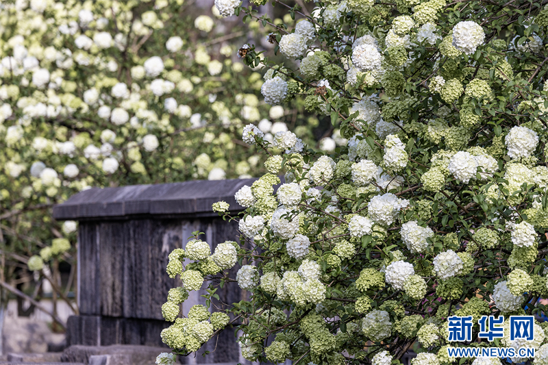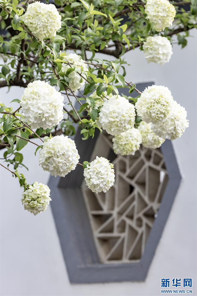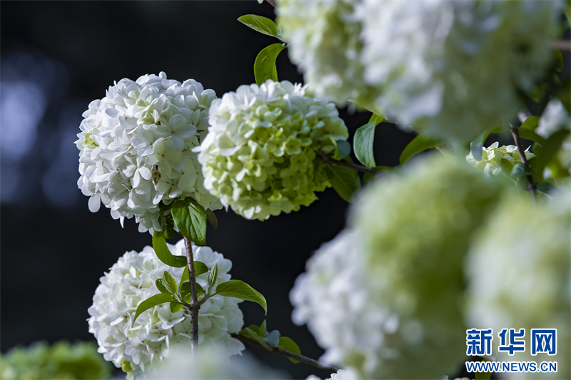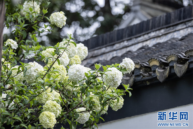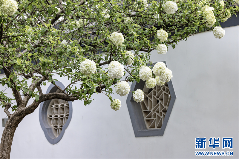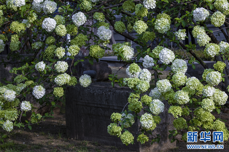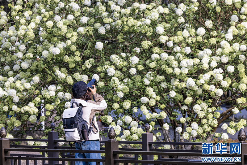 近日,南京木绣球“清新”上线,美成“顶流”。在总统府景区、午朝门公园内,花朵团团簇簇缀满枝头,吸引了众多游客前来拍照游览。(刘伟)