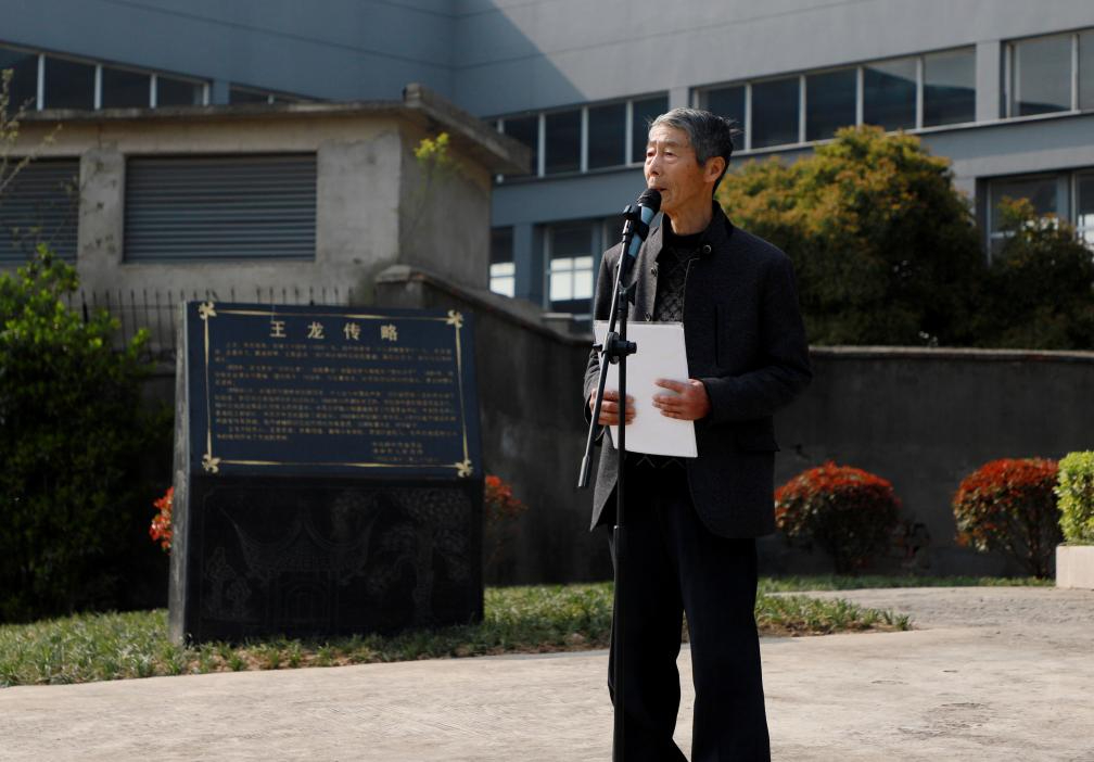 王龙烈士之子王立荣先生站在父亲的墓碑前,深情讲述父亲赤心报国、策反敌伪的革命经历,令在场师生深受触动。王立荣还向同学们赠送了《王龙烈士文集》,希望青年学子能够从中汲取精神力量,传承红色基因。