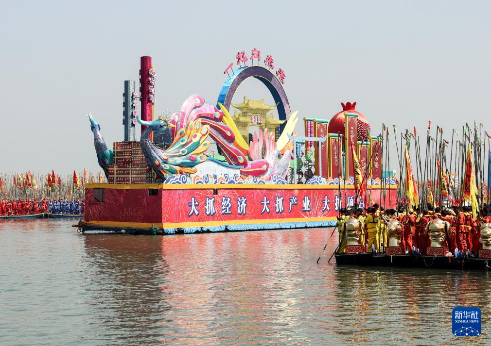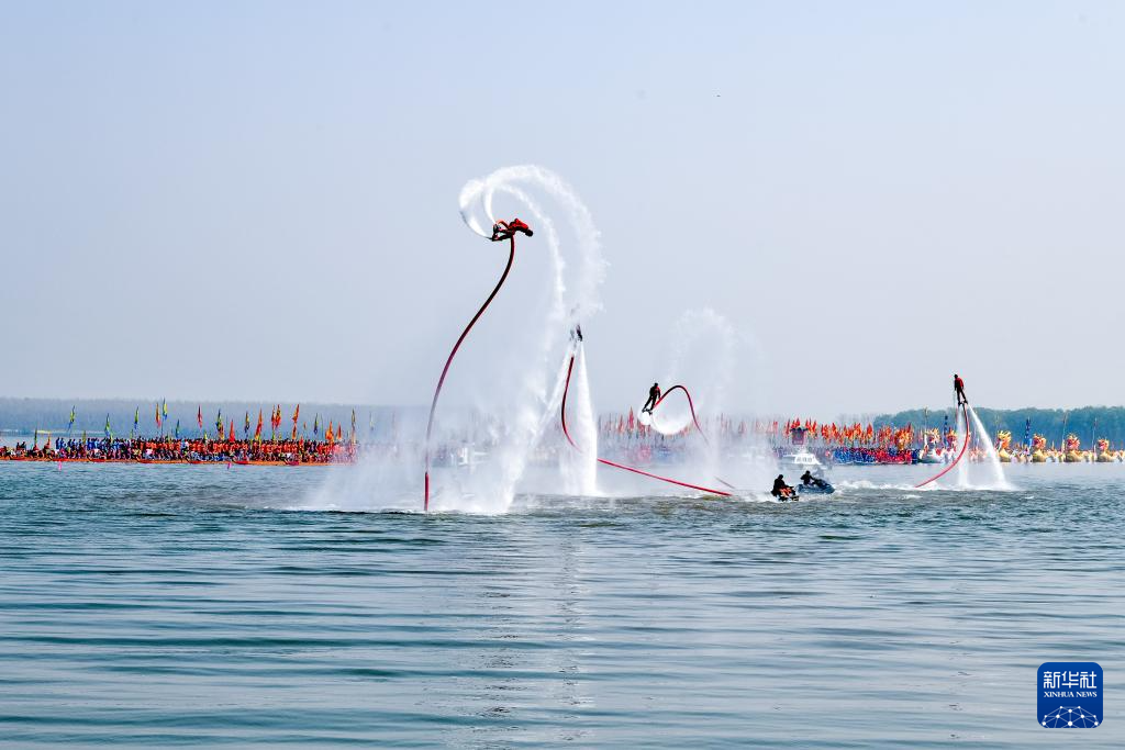 4月6日,贡船进行水上表演。