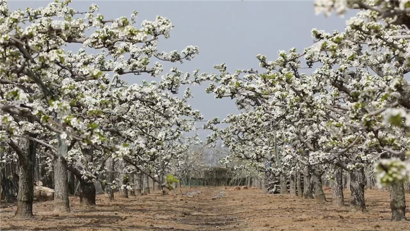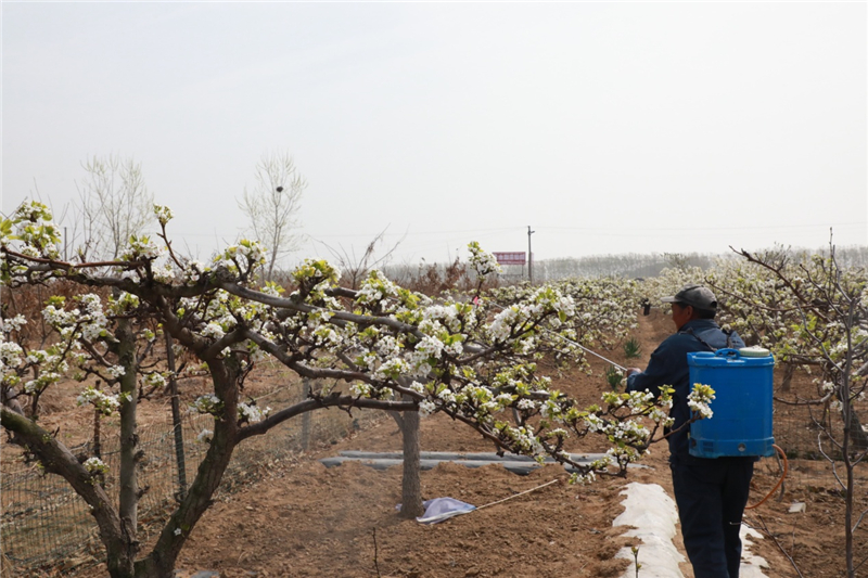 果农为梨花授粉