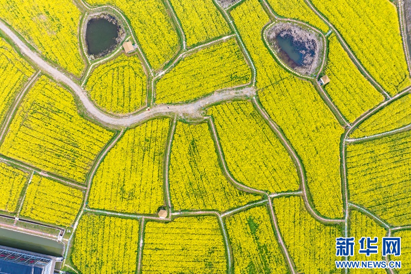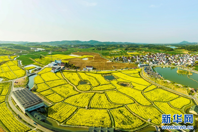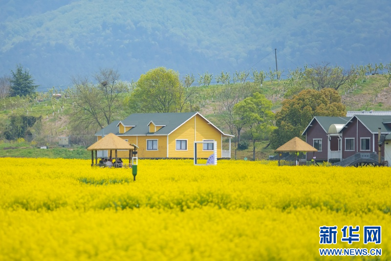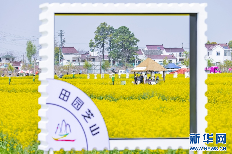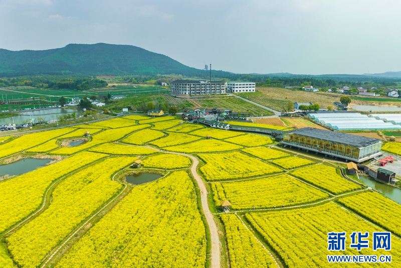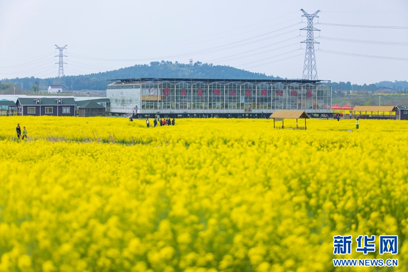 近日,在南京溧水区的富硒生态园内,油菜花海金浪翻滚,众多游客前来欣赏美景、品味美食,绘就一幅绚丽的春日画卷。(刘伟)