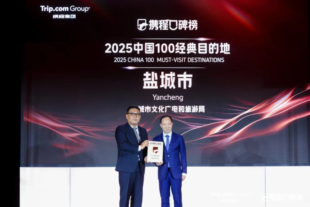 4月12日,由携程集团、燕舞集团主办的“2025携程口碑榜全球年度榜单发布暨颁奖盛典”在盐城大洋湾举行。现场颁发了凝聚着世界各地旅行者口碑推荐的酒店、景点、美食、夜游、目的地五个品类的100个榜单,每个获奖单位都为游客提供了高品质旅行服务。其中,盐城市荣获“2025中国100经典目的地”,中华麋鹿园荣获“2025中国100亲子景点”