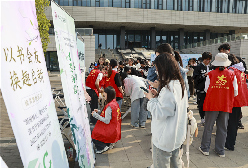 4月23日,泰州学院2025年“胡瑗读书节”开幕,以“才慧满园,春韵悠长”为主题推出系列趣味活动,吸引了众多学生积极参与。(顾继红 程曼)