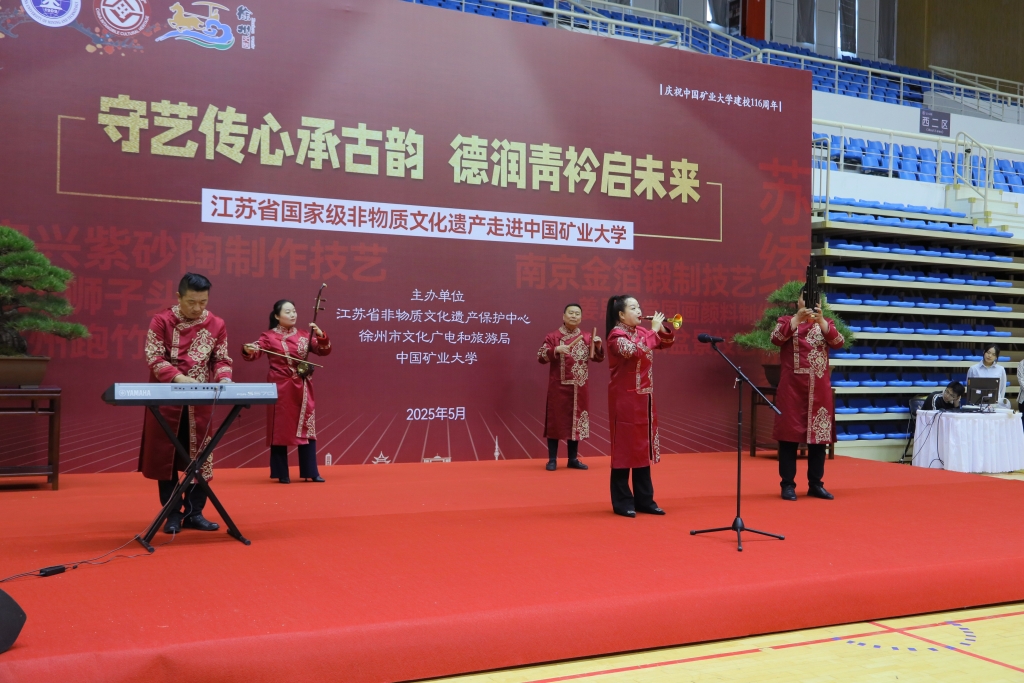 为推动中华优秀传统文化创造性转化、创新性发展,由江苏省非物质文化遗产保护中心、徐州市文化广电和旅游局、中国矿业大学共同举办的国家级非物质文化遗产进校园系列活动于5月8日-9日举行。11项国家级非物质文化遗产集体走进中国矿业大学,通过深度展示、沉浸体验与论坛研讨,推动非遗与高校教育的同频共振和双向奔赴。