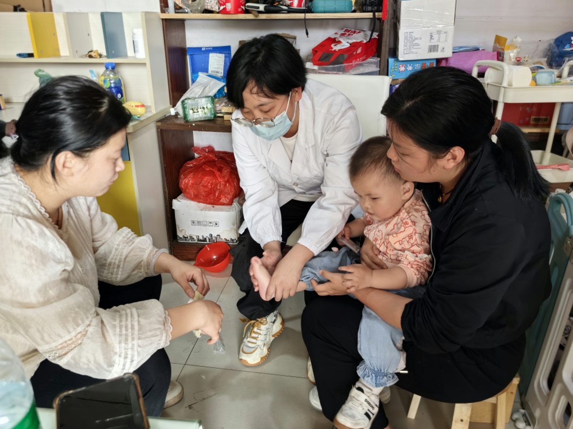 中心成员至托育机构开展驻点式专业巡诊是一大亮点。除开展有针对性的小规模培训、指导外,针对发育偏异的婴幼儿,进行个体化养育照护,改善并促进其生长发育,需要医疗干预的,则通过绿色通道,让婴幼儿得到及时诊治。巡诊开展至今,发现5名发育行为异常婴幼儿,已全部到市儿童医院儿保科就诊,其中1名转至儿童医院康复科治疗。
