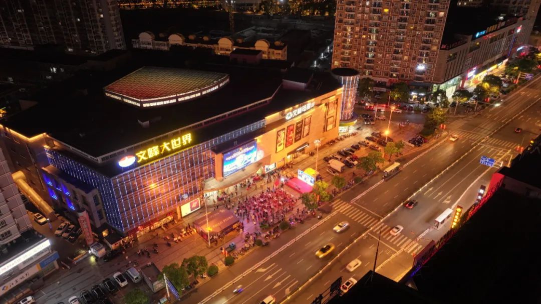 文峰大世界门前广场,400人助威团声浪与消费优惠共振,持票根兑换的优惠券直接拉动购物热潮。商场数据显示当日新增客流量超8000人次。