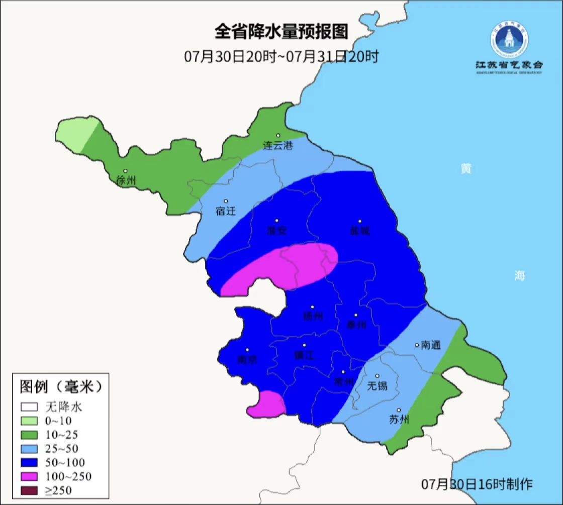 江苏省水利厅7月30日16时50分发布苏南运河洪水黄色预警:受强降雨影响,目前苏南运河常州(三)站水位4.37米,超警0.07米,无锡(大)站水位4.50米,超警0.30米,苏州(枫桥)站水位4.23米,超警0.13米,预计水位还将继续上涨。提醒影响区域各级政府及有关部门做好防汛工作;社会公众做好避灾避险。