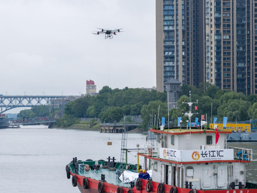 航行在长江上,船员动动手指点击下单,无人机即刻化身“水上小哥”自动起飞,将外卖精准投送至甲板……这样的科幻场景正在走进现实。