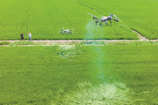 无人机对水稻进行飞防作业