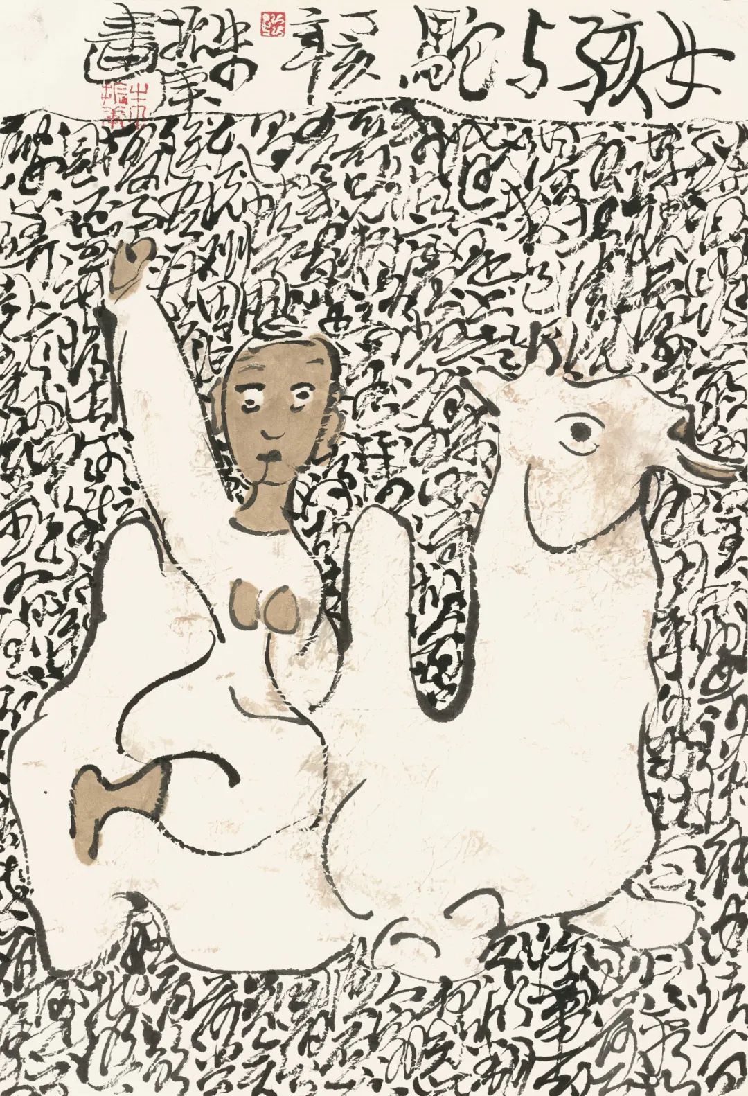 《女孩与驼》 朱振庚 纸本彩墨 50.2×34.1cm 2007年