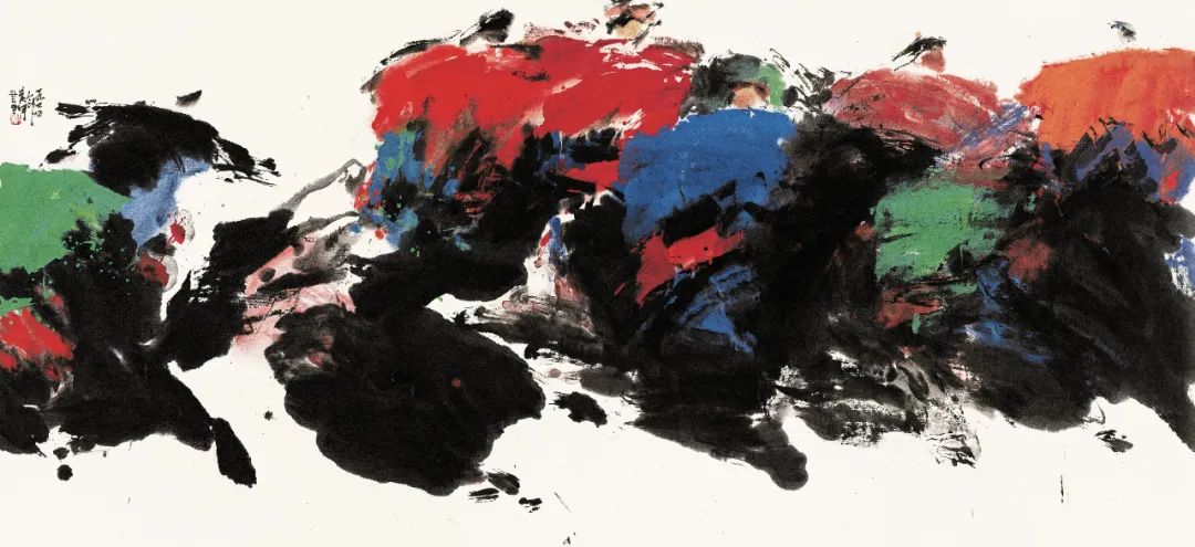 《草地交响》 贾浩义 纸本水墨 143×303cm 1994年