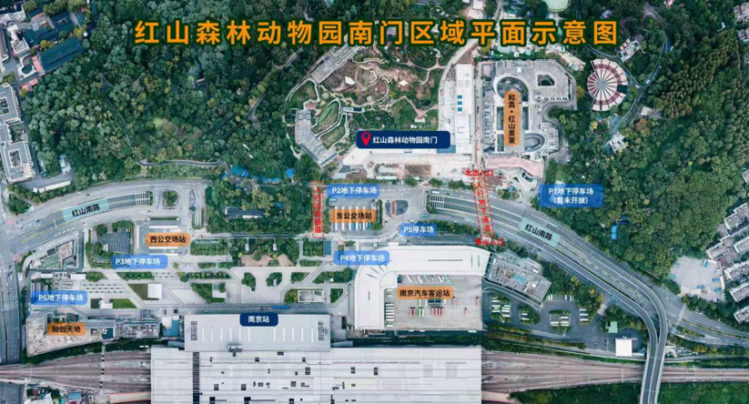 随着红山南路人行地下通道启用,从南京站北广场步行约100米,即可从红山南路南侧出入口进入地下通道,从北侧出入口走出即达动物园南门。
