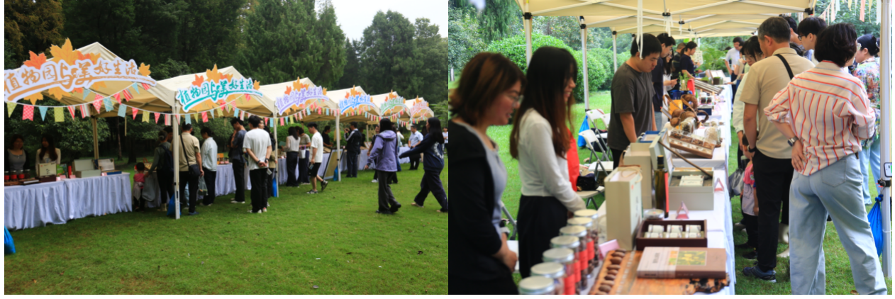 北园“科技成果展&科学市集”创新性的将科研实物展品与市集相结合,为公众提供科学、互动满满的市集体验。公众不仅可以在各个展位与科研人员互动,了解植物园的各项科研成果;还可与植物园的研究生面对面,听青年科研人员阐述研究项目和内容;展览还设置了趣味科学“套圈”活动,公众答对科学问题即可获取套圈机会,赢得植物园盆栽或文创礼品;此外,市集还设置了多处打卡点,供游客拍照打卡。