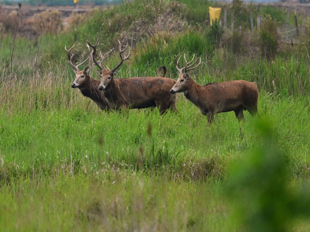 6月7日在江苏盐城东台条子泥湿地拍摄的麋鹿(张龙 摄)