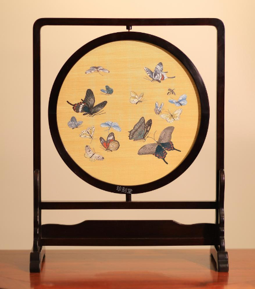 本次展览主题为《墨舞蝶韵》,共7位艺术家带来包括缂丝工艺品、竹刻、和田玉镶嵌、紫砂壶、刺绣香包、剪纸、猛犸象牙浅刻等23件工艺品,展期即日起至11月30日。