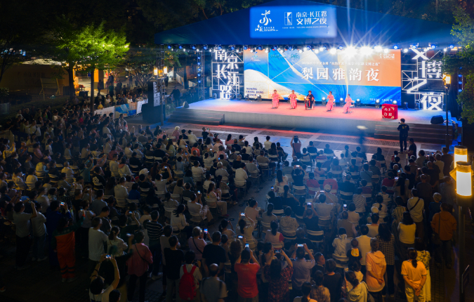 “水韵江苏・南京长江路文博之夜之梨园雅韵夜”主会场活动也如期而至。表演以南京的古老曲种——南京白局开场。南京金陵风白局曲艺团带来的精彩演出,通过非遗曲艺的形式,讲述金陵故事,引领观众从认知南京城市轮廓起步,漫步于其深厚的景观文化遗产之中,完成了一次由表及里、由景入情的城市人文之旅。