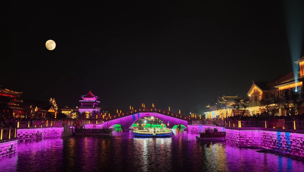 其他中秋主题活动也同步举行:非遗“打铁花风火轮”绚烂绽放,火花四溅间尽显非遗魅力;画舫游灯“御船曼舞秀”诗意十足,载着游客梦回千年江南;东莱阁前,《花好月圆》杂技专场演出人气爆棚,其中“奔月”环节尤为惊艳,“嫦娥”时而在吊环上翻转腾跃,时而悬于半空轻摆,将神话意境与杂技巧技相融,为团圆夜添满浪漫仙气。“我很喜欢月亮,也爱听嫦娥奔月的故事,这些活动都太精彩了,栟茶古镇真的是太好玩了。” 游客袁周慕开心地说。(葛重阳 钱晓天)