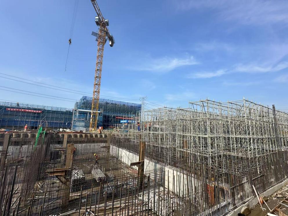 位于昆山开发区蓬溪北路281号的工业污水处理厂项目正在加紧建设。机器轰鸣,工程车辆穿梭往来,工人们忙碌地进行钢筋绑扎、模板搭建和混凝土浇筑等作业,现场一派繁忙景象。