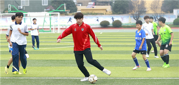 随后,他们与学生们组队,进行一对一、一对多的技巧指导——稳健的颠球、精准的短传、巧妙的停球,引得孩子们惊叹连连。