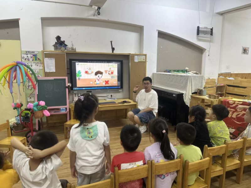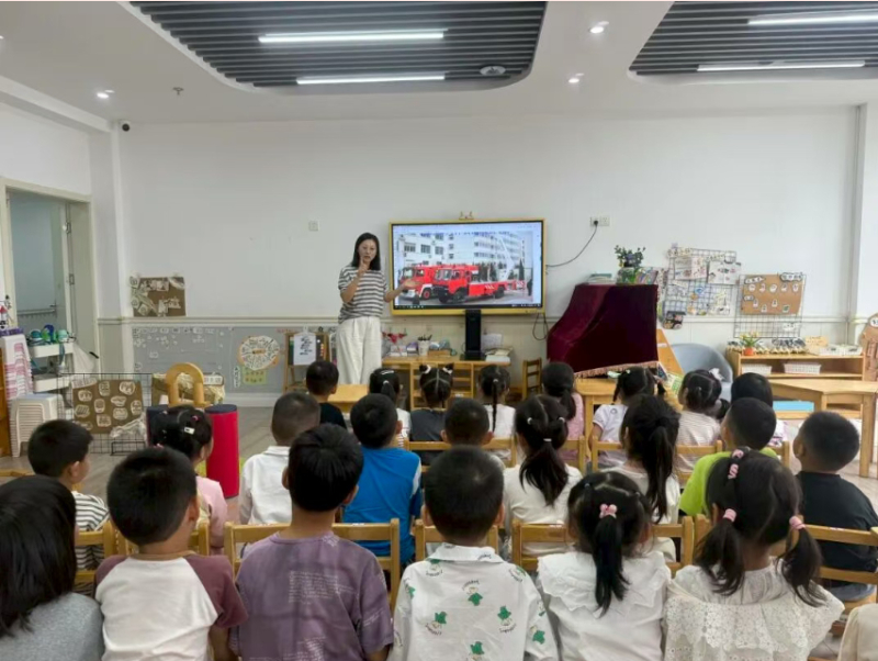南京市秣陵中心幼儿园聚焦“防灾减灾+日常安全”,各班开主题班会:用卡通道具模拟“红绿灯过马路”教交通安全,通过触摸灭火器模型讲消防知识,结合生活场景提醒用电用火用气注意事项,以“可视化+互动化”让安全知识入脑入心。