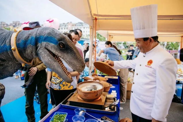 客场对阵无锡队时,常州携手无锡在江阴推出“漫澄光”美食集市。此后,美食嘉年华成为“苏超”赛场外的标配。每逢比赛日,常州名厨必定亮相,现场烹饪鲜掉眉毛的天目湖鱼头汤和非遗美食萝卜干炒饭,供游客免费畅吃,还有糯香可口的园外园“苏超”限定青团、外酥里嫩的青果虾饼、香喷喷的大麻糕、香香糯糯八宝菜粥、清清爽爽绿豆汤……常州以一己之力,撬动全省十三城开启美食“德比”。