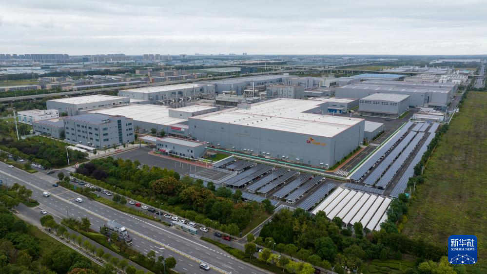 位于中韩(盐城)产业园内的SK新能源一期动力电池生产基地(10月16日摄,无人机照片)。