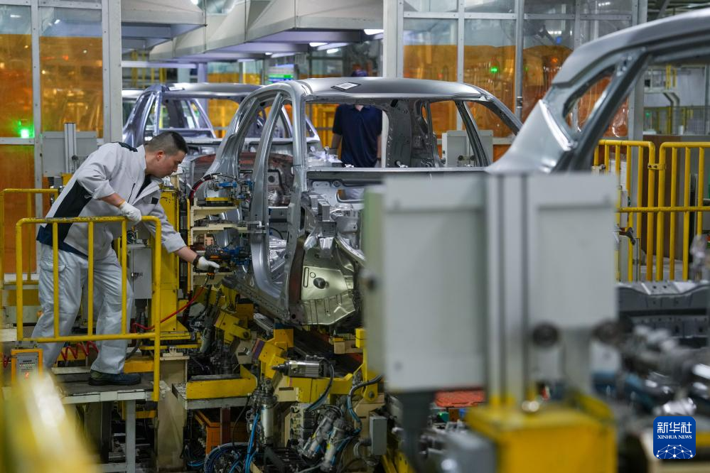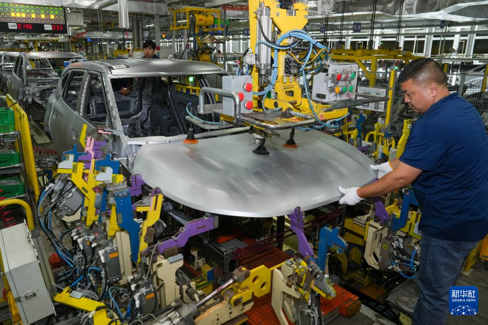 工人在江苏悦达起亚汽车有限公司生产线上工作(10月16日摄)。