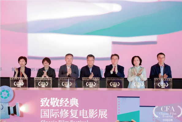江苏省委宣传部一级巡视员王明珠,中国电影资料馆副馆长陆亮,中宣部电影局技术处处长黄治,苏州市委常委、宣传部部长金洁,中国台港电影研究会会长孙向辉,江苏省电影集团党委书记、董事长邵正刚,苏州市委宣传部副部长、一级调研员杨芳共同为本次活动启幕。