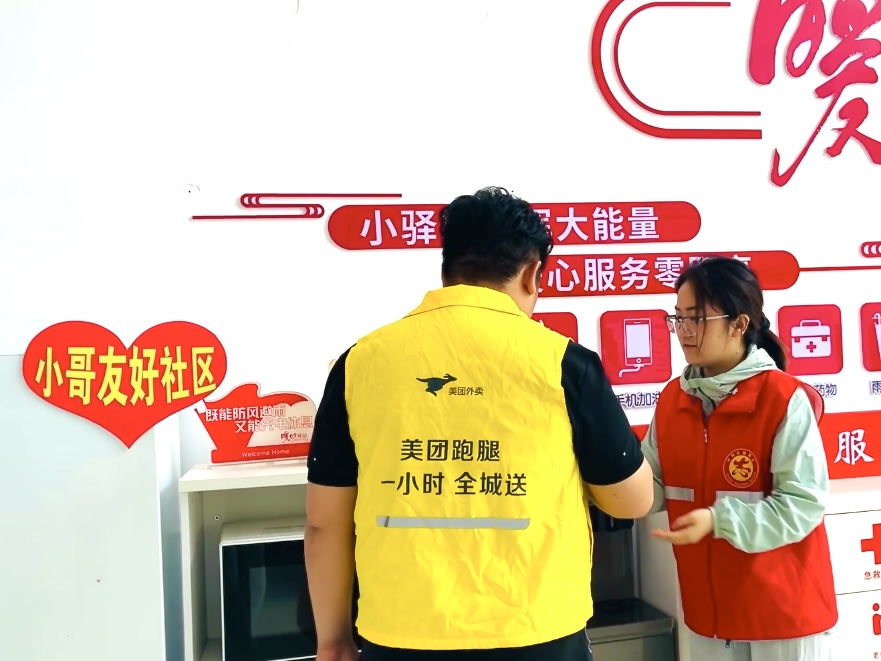 如果说“小院议事会”是激活基层治理的“内生动力”,那八大社区的“暖心驿站”就是守护民生温度的“外在支撑”。在驿站不大的空间里,微波炉、冷暖空调、急救箱、免费充电插座一应俱全。“天不亮就出门跑单,能在这里喝口热粥、歇会儿脚,比啥都强。”跑腿小哥小张捧着水说。